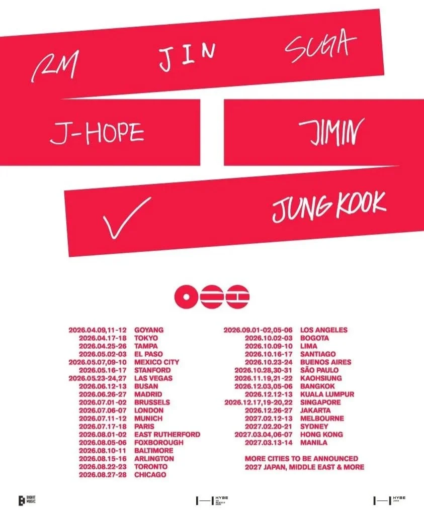 Estas tres fechas forman parte del calendario oficial de la gira mundial, lo que convierte a mayo de 2026 en un mes histórico para el ARMY en México.