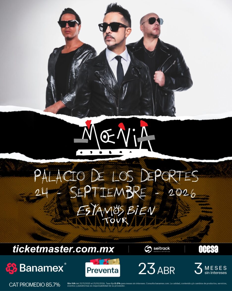 La icónica banda mexicana Moenia anuncia uno de los conciertos más esperados de 2026: su debut en el Palacio de los Deportes. El próximo 24 de septiembre, el recinto vibrará con el inconfundible estilo del synth-pop que ha marcado generaciones, como parte de su Estamos Bien Tour, una gira que promete una experiencia sonora y visual de alto nivel.